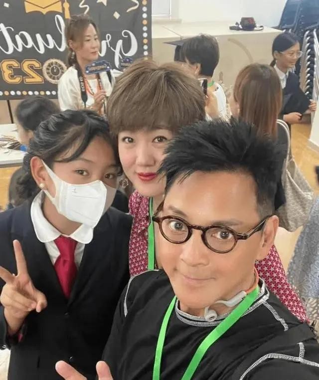 照片里,莫少聪身穿黑色羽绒服,一头浓密黑发,保养得宜的他完全看不出已经62岁。而站在中间的,就是莫少聪的女儿莫芷嫣,可见她已经高过爸爸的肩膀。