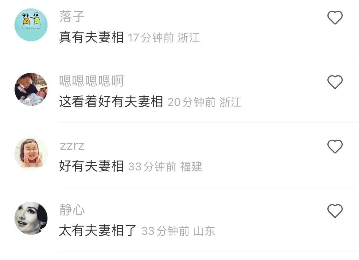 网友们看了后都纷纷留言表示说越来越有夫妻相,最可爱的是还有网友说像“好像兄弟,又好像姐妹”。你