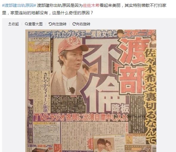 甚至对于自己出轨的原因,渡部建也是很神奇的表示因为家务问题