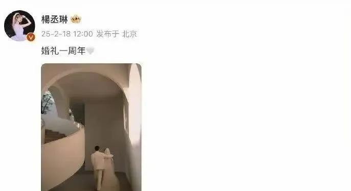 时间过得可真快,到了2025年2月18日,也就是婚礼一周年的时候,杨丞琳在社交平台上晒出了一张和李荣浩的婚纱背影照,还配了一句“婚礼一周年”。这一下子,就跟在平静的湖水里扔了一颗超级大石头似的,激起了好大的浪。大家这才知道,原来他们早就办了婚礼,而且还藏得这么深。照片里,李荣浩穿着帅气的白色西装,温柔地搂着穿着白色抹胸婚纱的杨丞琳,两人的背影看起来特别幸福,满满的甜蜜都快溢出来了。