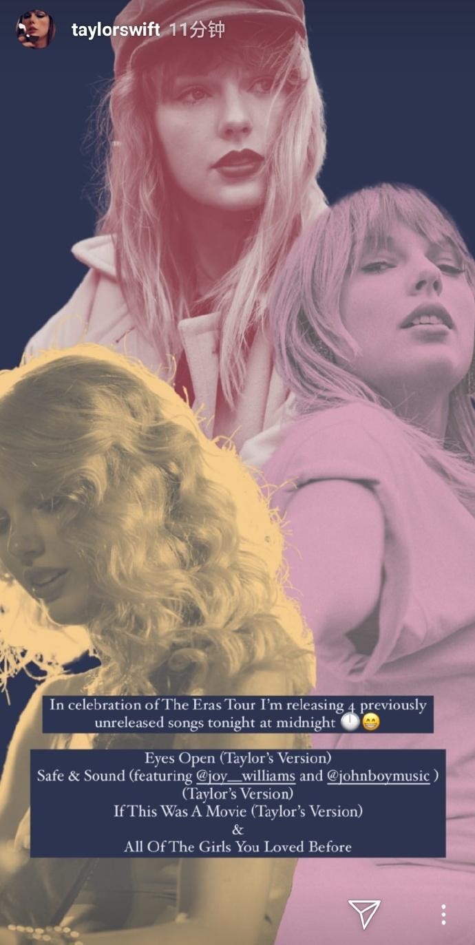 3月17日,“霉霉”泰勒·斯威夫特在社交平台宣布中午将发行4首新歌!