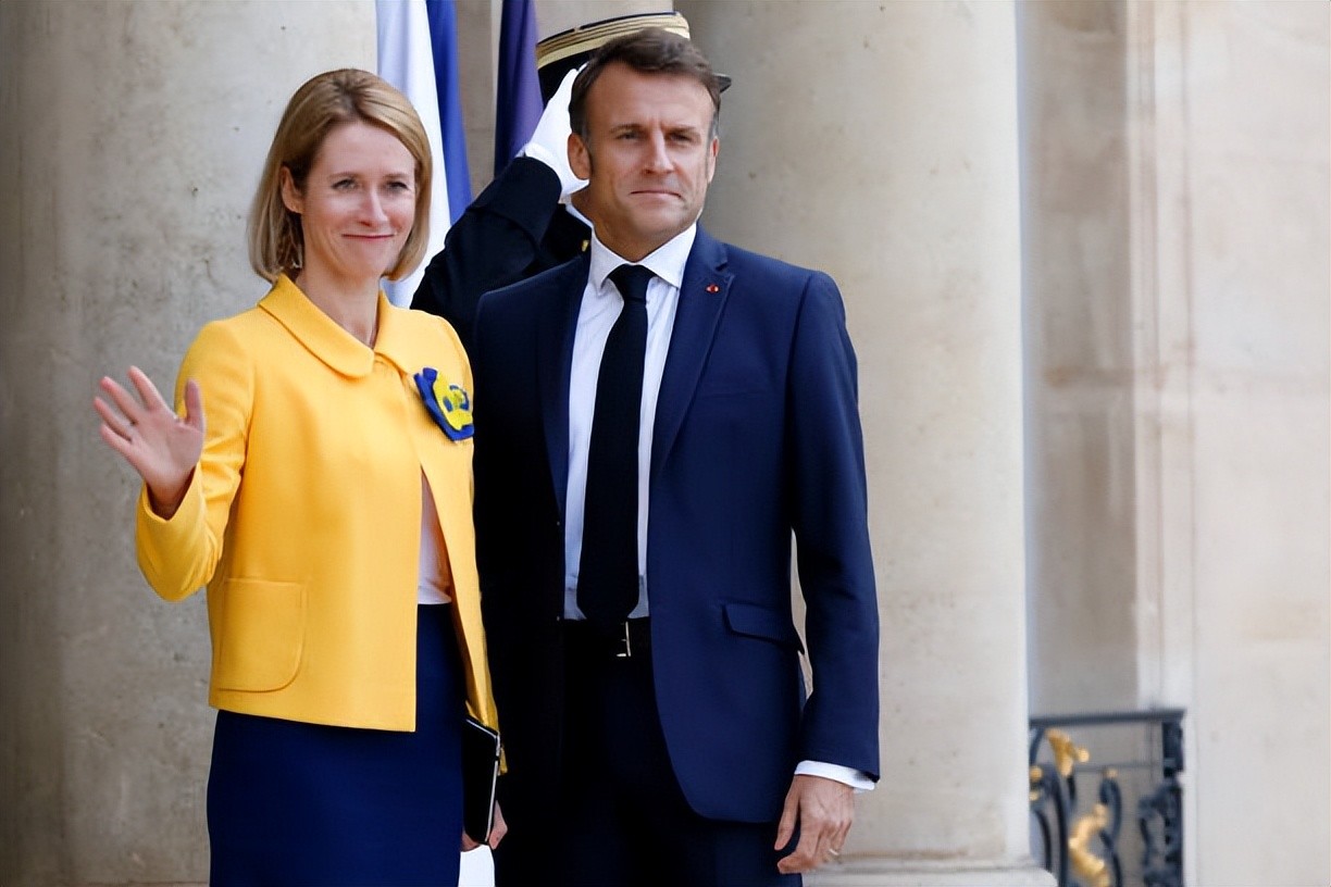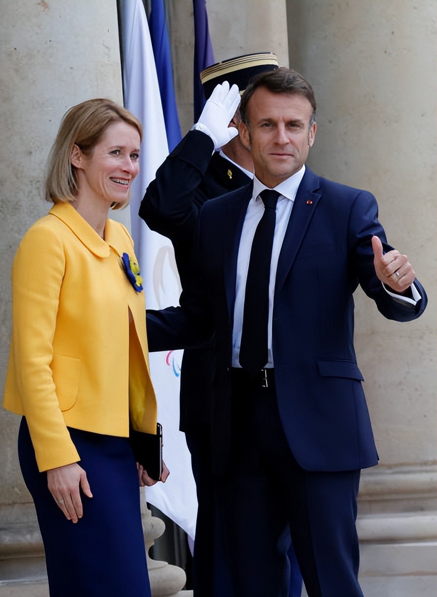 前段时间,爱沙尼亚美女总理访问法国,法国总统马克龙也是对她非常热情。卡娅的这身造型也是叠穿的,蓝白裙配上嫩黄色的小外套,而不是传统的西装,爱沙尼亚美女总理笑起来非常甜,当她走台阶的时候,马克龙也是伸出了绅士的手。
