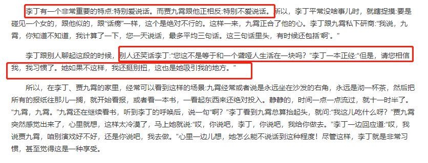贾九霄与李丁携手走过几十年,后半生更是成为了彼此的精神支柱。