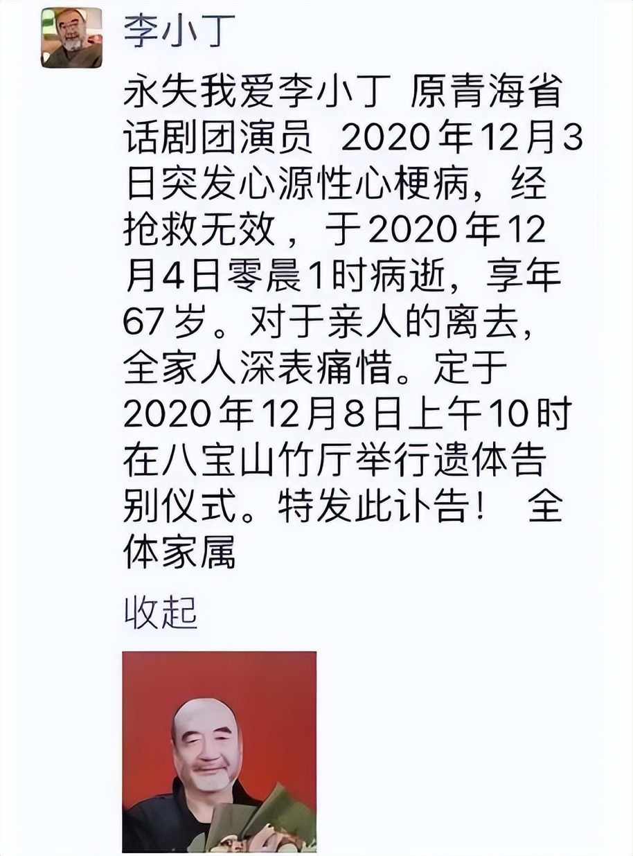 2020年,儿子李小丁也不幸因病去世,贾九霄白发人送黑发人,