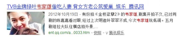比起作品,韦家雄的私生活更有看头。拍摄《金枝欲孽2》时,跟同剧组的陈嘉嘉勾搭上了,重点是陈嘉嘉已婚。据说这俩人都同居了呢。