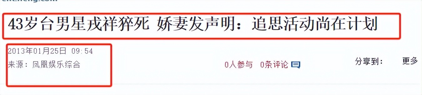 凤凰娱乐综合 2013-01-25 《43岁台男星戎祥猝死娇妻发声明:追思活动尚在计划》