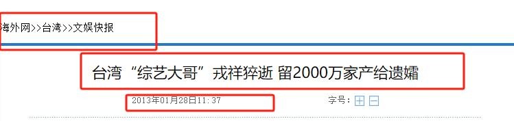 海外网-台湾-文娱快报 2013年01月28日 《台湾“综艺大哥”戎祥猝逝 留2000万家产给遗孀》