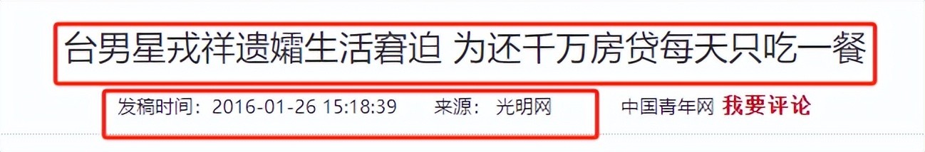光明网 2016-01-26 《台男星戎祥遗孀生活窘迫 为还千万房贷每天只吃一餐》