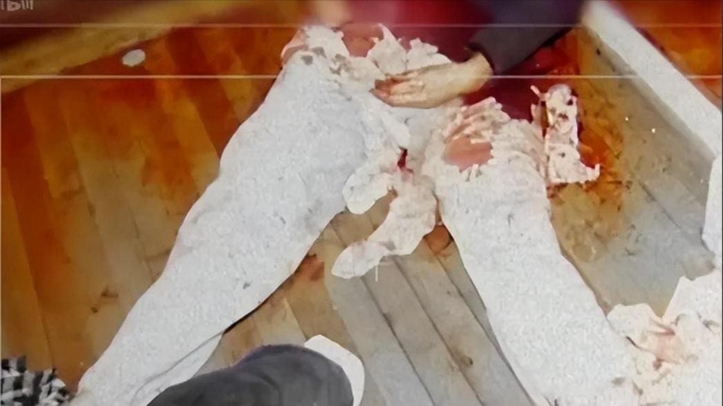 推门而入,眼前场景让所有人都吓了一跳,地上全是红褐色的已经干涸的血迹,血脚印、血手印满屋子到处都是,两具尸体被丢到了屋子里的沙发上,已经死亡多时。