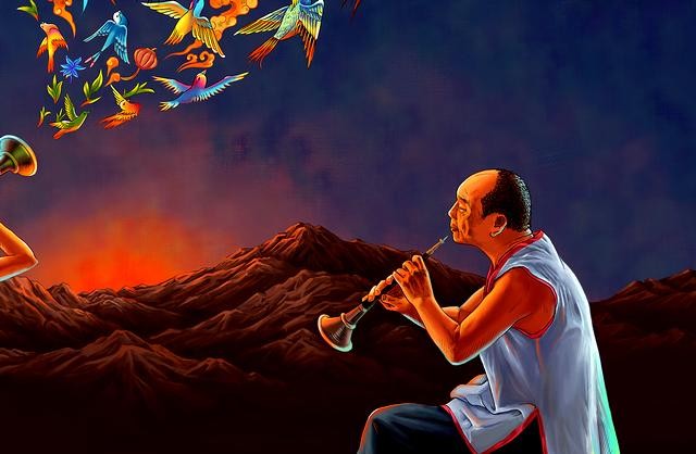 在师傅的精心指导下,他的唢呐技艺日益精进,逐渐在当地崭露头角,成为小有名气的唢呐匠,也能够凭借这门手艺让自己和家人的生活得以维持。