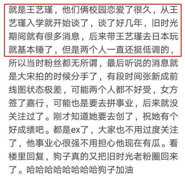 5月6号,有人在论坛发帖问“创3的王艺瑾是张新成前女友吗”,帖子中放的是自称张新成粉丝的网友爆料截图,详细曝了两个人当时是怎么谈怎么分的,还说他们很低调粉丝挺满意,最后列出了王艺瑾张新成同款照,增加可信度。