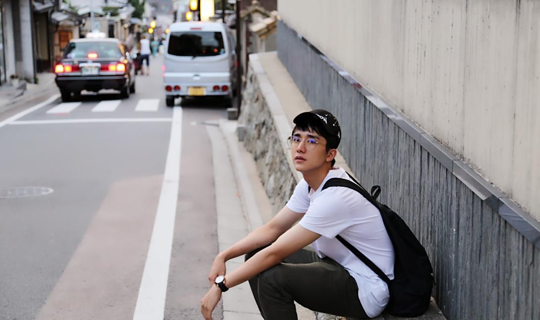 还有传说中的那次日本之旅,2017年9月张新成发了几组在日本的照片,其中一张他坐在路边,旁边是白色