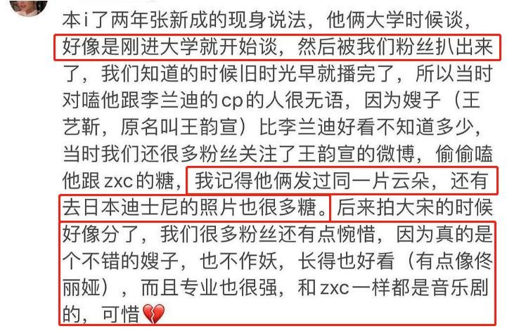 根据爆料,张新成和王艺瑾似乎是校园恋爱,刚进大学开始谈的,谈了几年被粉丝扒出来了,两个人还一起去过日本旅游,比较低调,粉丝们对王艺瑾挺关注,甚至偷偷嗑糖觉得挺甜。