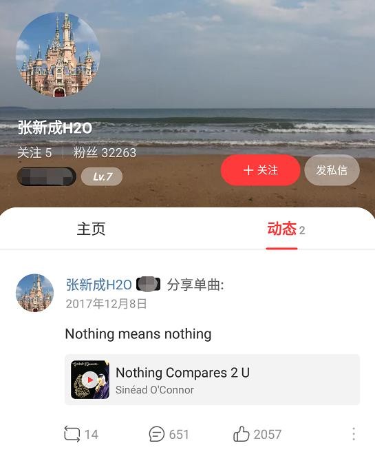 而张新成的音乐账号头像也是迪士尼城堡,有着微妙的巧合。