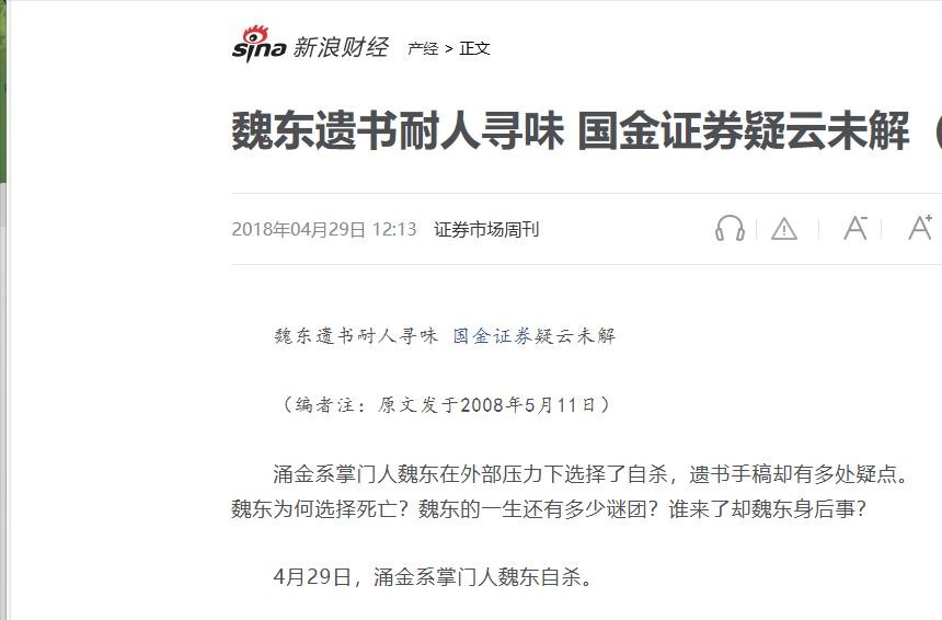 信息来源:证券市场周刊2018-04-29发布:魏东遗书耐人寻味 国金证券疑云未解
