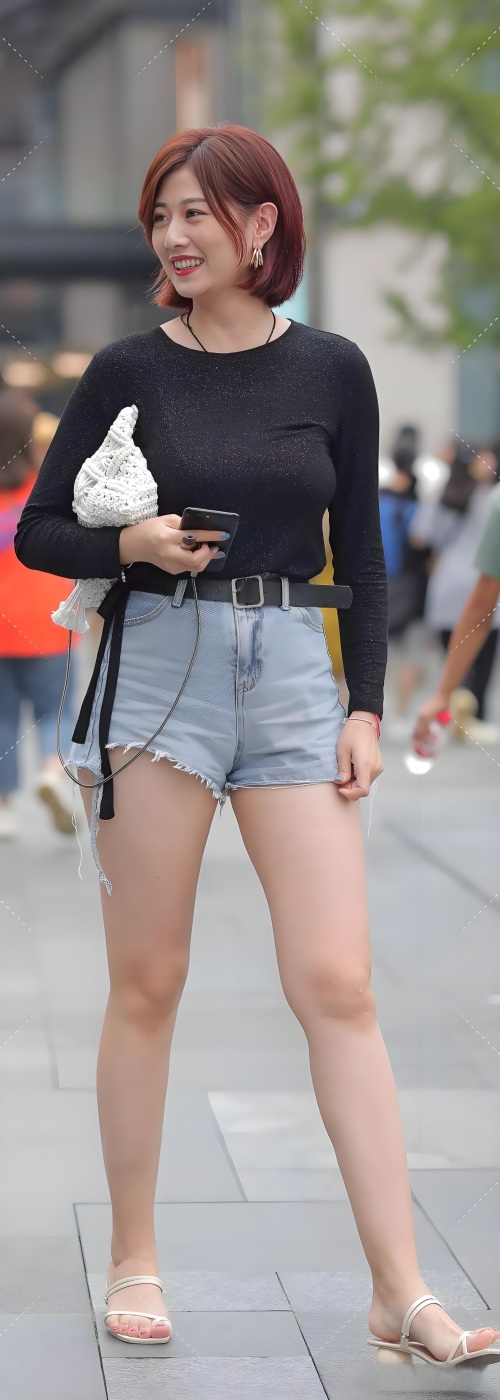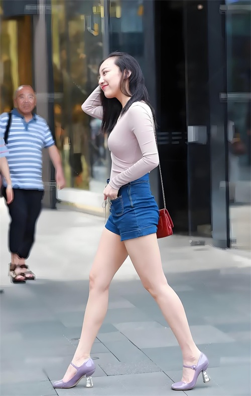 高清街拍:时尚牛仔热裤美女,身姿矫健展非凡气质,引领夏日风尚