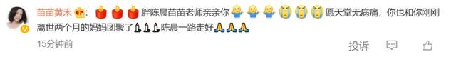 重点是一位网名叫“苗苗黄禾”的网友在悼念陈晨的时候说出了一件更让人痛心的事情,那就是陈晨的妈妈在两个月前刚刚离世,如今母子两人在天堂相聚。