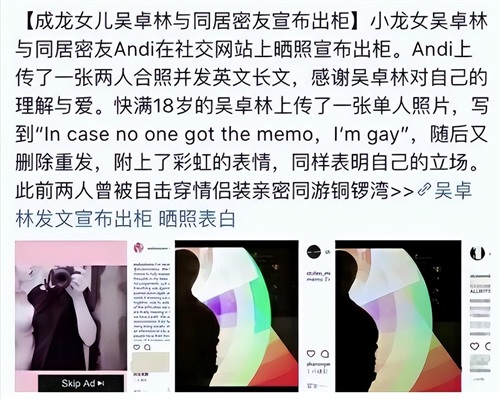在成年之后,吴卓林索性不藏了,直截了当地公布了自己不正常的性取向。