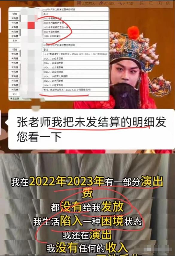 然后,他说他还欠着2023年的一部分和2024年全年的演出费,加起来40多万,这让他现在的生活都困难了。