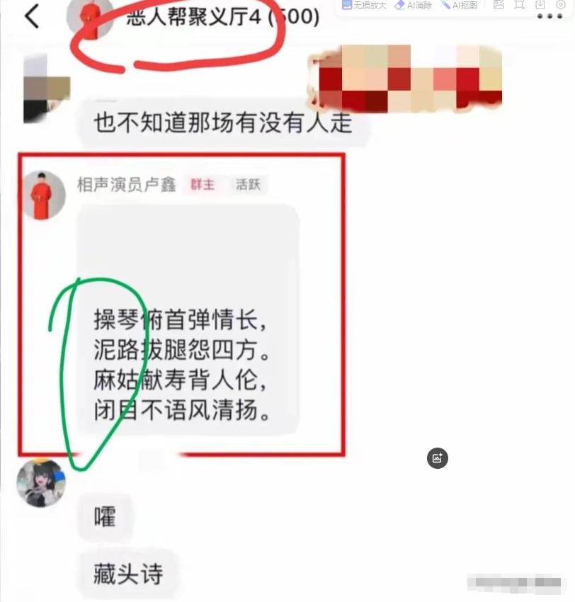 他还晒了一首藏头诗,内容挺过分的,听着都让人不舒服。