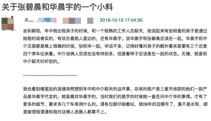 原因很简单,还有别的瓜主直接在豆瓣点名道过姓,说主人公就是华晨宇跟张碧晨。