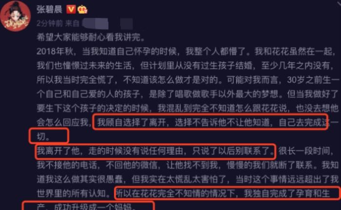 不怪网友们说这是霸道总裁文里的女主带球跑情节走进现实,因为张碧晨的选择,大概的确不符合很多人的想象。