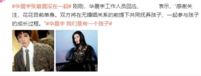 但华晨宇方已经回应了,艺人目前单身,双方是在无婚姻关系的前提下共同抚养孩子。