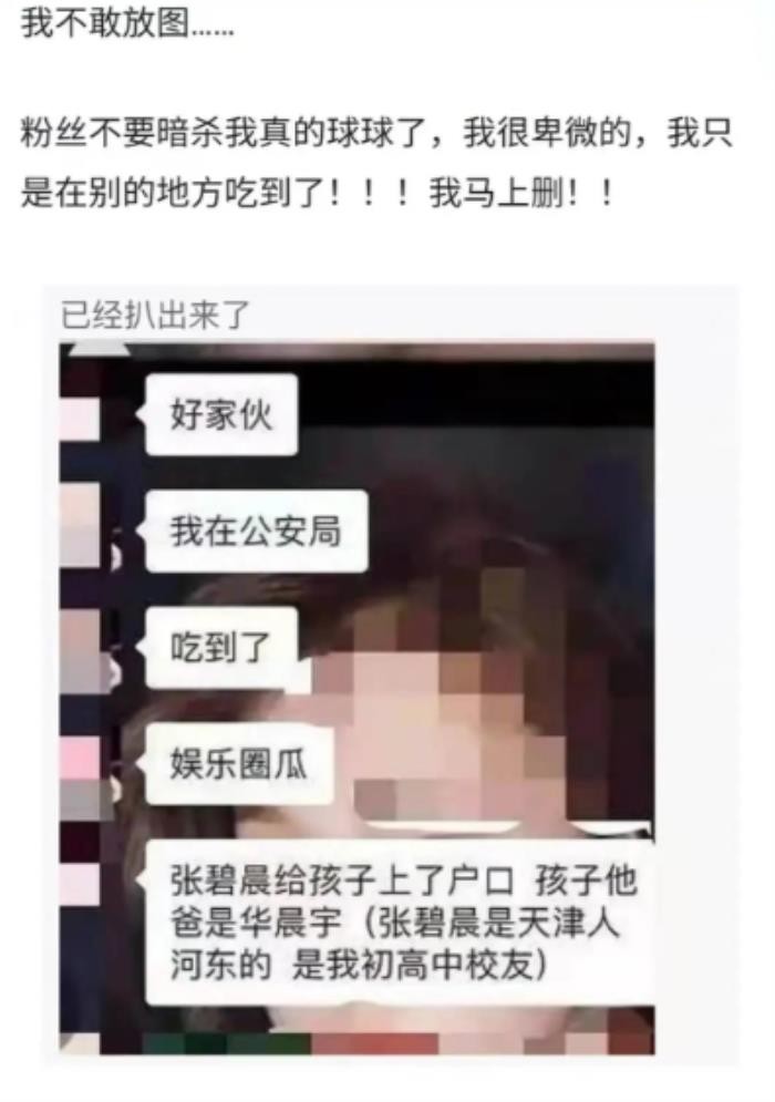 爆料的人也做了补充,是因为华晨宇跟张碧晨没办结婚手续,所以只能做亲子鉴定来给孩子落户口。