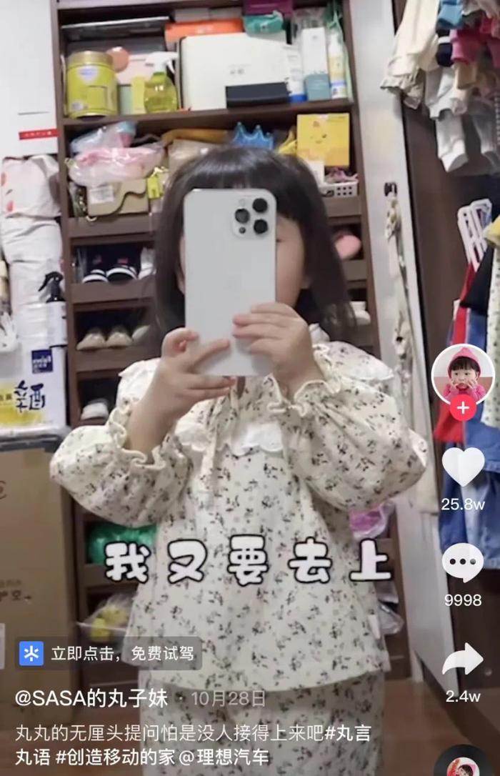 在丸子妹三个半月时,母亲就为她开通了抖音账号,开始记录她的成长。