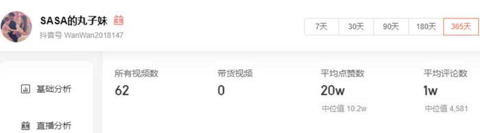 今年一年拍了62条视频,每条视频的点赞量都在20w左右。