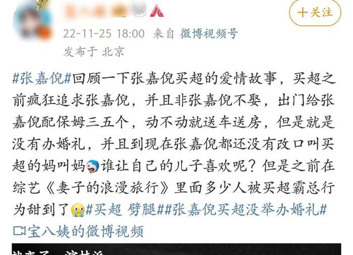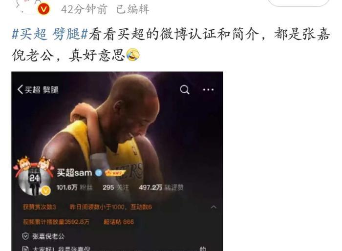 并且,买超的个人微博简介到现在还都是张嘉倪老公。然而,现在看起来颇为讽刺。