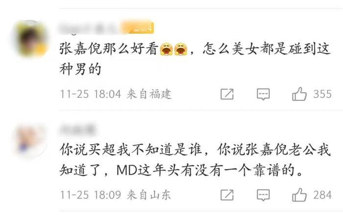 有不少网友纷纷在评论区留言道,为张嘉倪不值!甚至还有网友直言道:你说买超,我不知道是谁?但是你说张嘉倪老公,我就知道是谁。