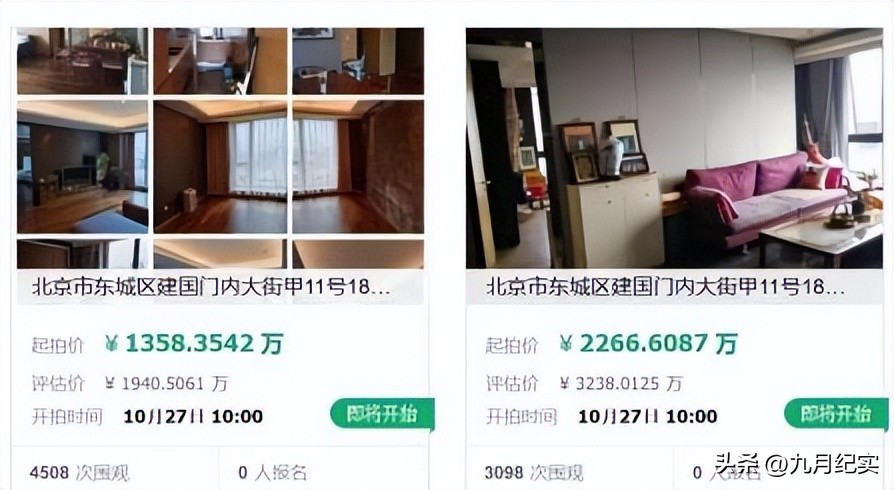2021年,拍卖平台上出现了何巧女在北京的两套房产,起拍价也到了1358万元和2267万元。