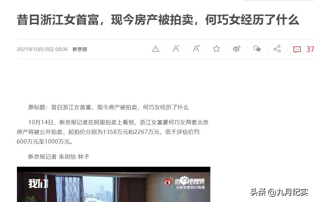 新京报2021年10月18日报道:昔日浙江女首富,现今房产被拍卖,何巧女经历了什么