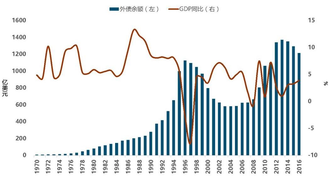 为了维持增速,有不少国家或地区选择依靠外债来维持经济增长,等到20世纪90年代中期,虽然经济数据看起来依旧漂亮,但是许多国家或地区事实上已经沦落到了无力还债的境地。