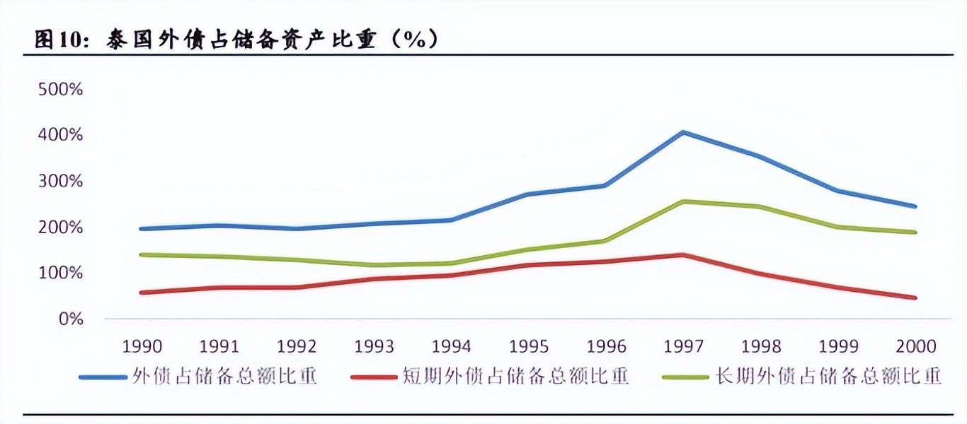 与此同时,泰国的经济发展中过度依靠外债,外债占外汇储备的比重竟达到292.97%,如果遇到狙击,泰国能够动用的资金就会相当有限。