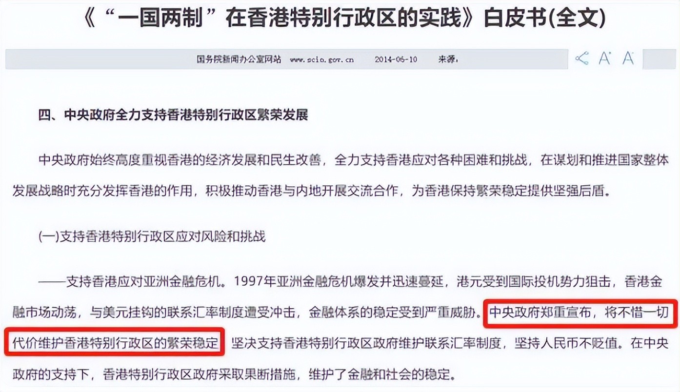 面对香港的求助,中央政府郑重承诺,将会不惜一切代价维护香港的繁荣稳定。