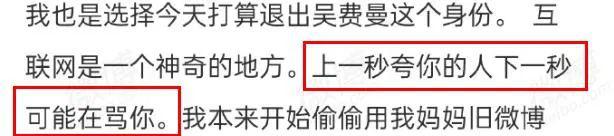 在去年八月份,他发文宣布自己要退出吴费曼身份。