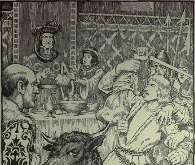 如果光看年龄,这场聚会简直像是青少年的party:主人苏格兰国王詹姆斯二世年仅十岁,被邀请的第六代道格拉斯伯爵、威廉·道格拉斯年仅十六岁,他还带着自己的弟弟(年岁不详)一起来赴约。本来一群年轻人吃着酒唱着歌,气氛一派欢乐祥和,然而就像权力游戏中史塔克家族听到“卡斯特梅的雨季”而心脏骤降一样,作为急转直下的信号,一个黑色的牛头突然被搬进宴会餐桌,摆在格拉斯伯爵面前——这可不是一道新上的大菜,而是意味着要取他的人头。