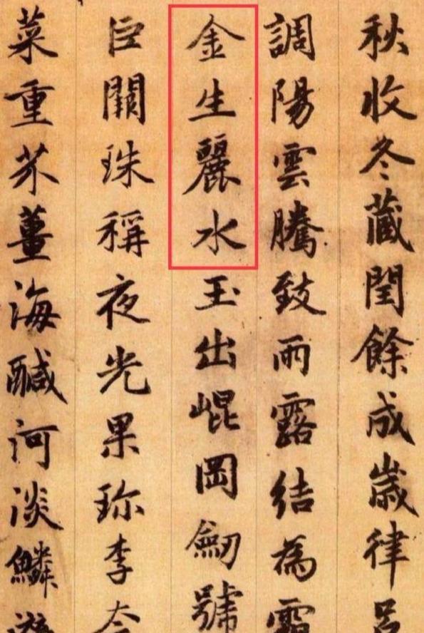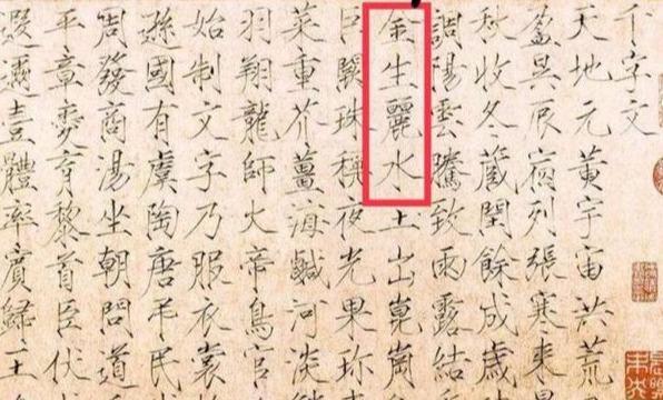 南梁武帝(502-549年)命人从王羲之书法作品中选取1000个不重复汉字,命员外散骑侍郎周兴嗣编纂成文,全文由对仗且押韵的四字句组成,这就是《千字文》,其中有两句与本文主题相关——金生丽水,玉出昆冈。