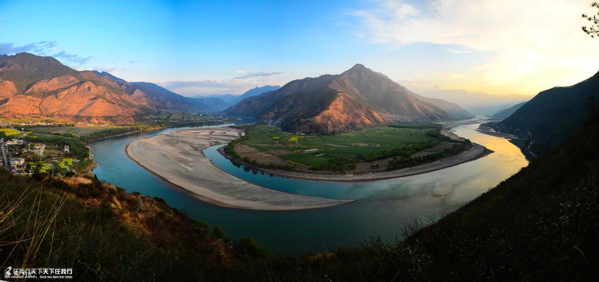 云南省迪庆州,金沙江(长江上游)第一湾全景