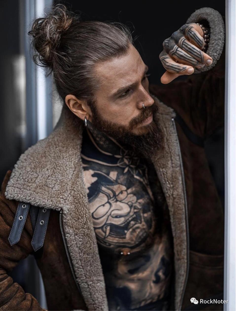 男士发髻是最好的长款男士发型中的经典之作。你的头发必须足够长才能拥有这种发型。可以使用发带将头发扎起来。头发生长、头发护理和管理可能很困难。这是一种阳刚、性感和魅力十足的发型。粗糙的胡须和纹身等细节丰富了这款长发型。