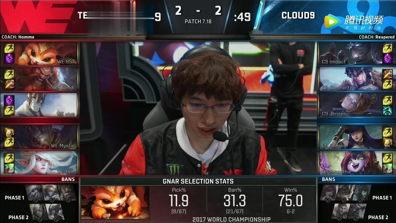 在10月22号,S7全球总决赛八强赛WE对阵C9的第五局,WE兮夜选出加里奥,对己方大嘴多重保护,最终赢下关键一局,晋级四强。
