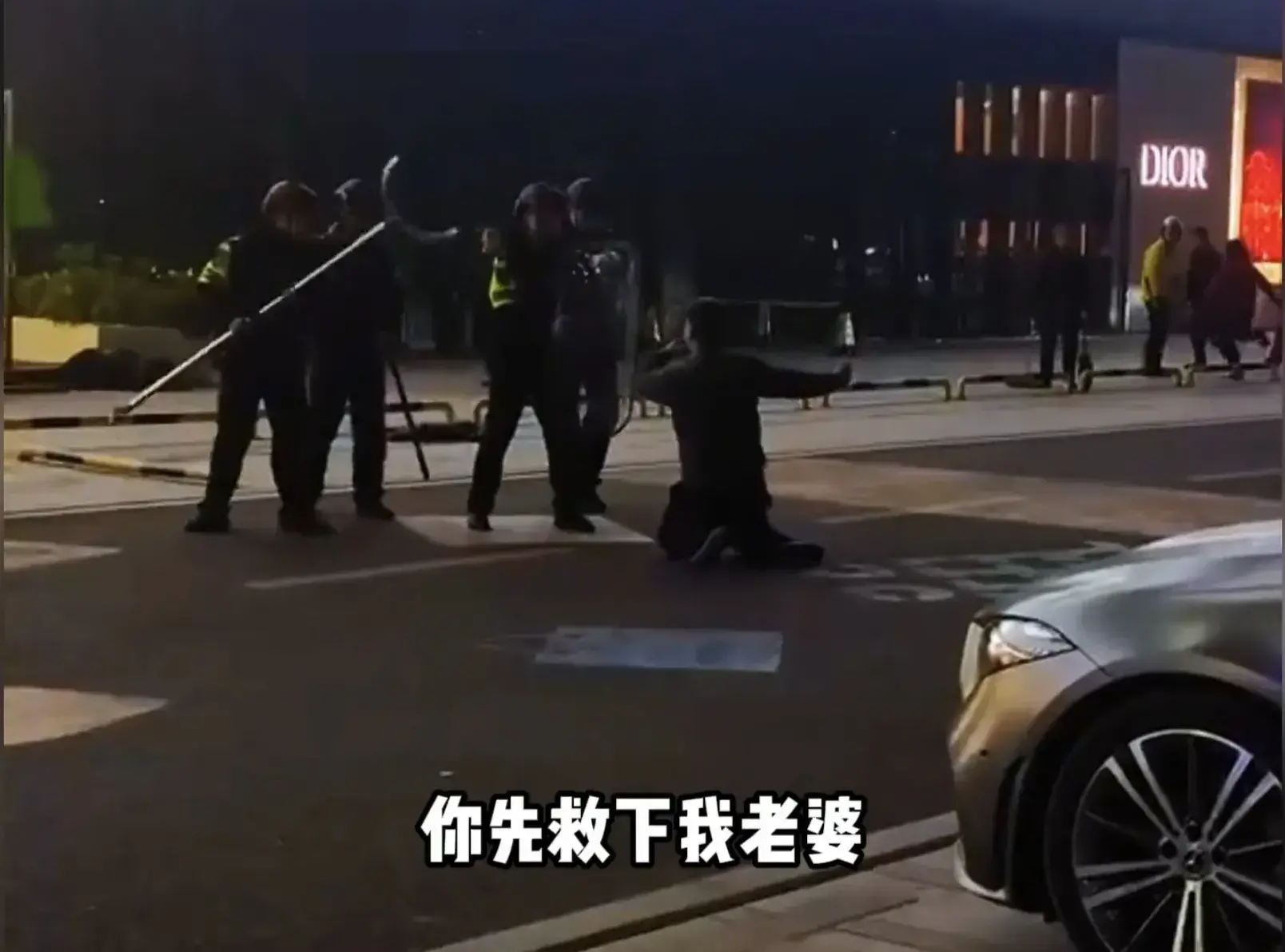 现场视频显示,男子在广场上持刀猛刺女子,随后警方赶到将其制服。男子被抓时还在担心女子,高喊“救救我老婆”。但女子最终还是伤重。