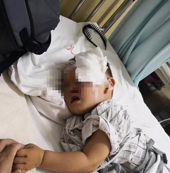 这突如其来的变故,让女婴的父亲非常的害怕,赶紧冲上前去救女儿,但没想到的是,女婴还是被恶犬咬伤面部,面部不仅血迹斑斑,连女婴的泪管都被要断了,父亲将女婴送进了儿童医院,医生见到这样的情况都被吓到了,赶紧给女婴检查包扎,处理伤口。