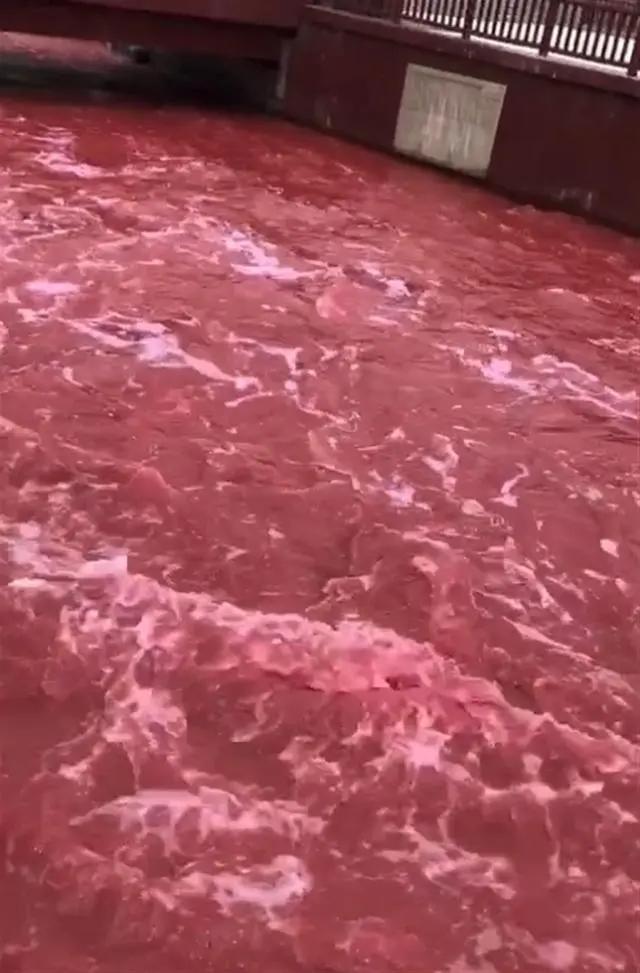 5 月 30 日,有网友拍摄到四川阿坝州松潘县川主寺附近河段,水流呈现异常的红色。
