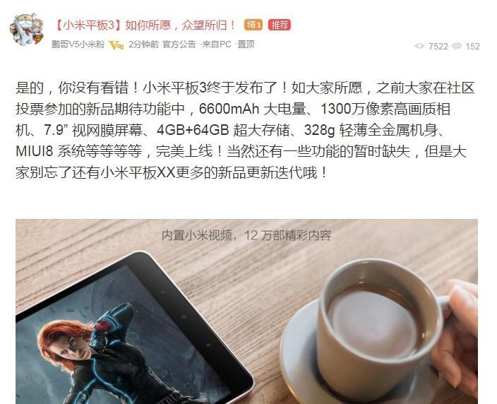 不过,据小米官网和社区的预热活动暗示,小米还会有一款搭载windows 10的9.7英寸大屏平板。