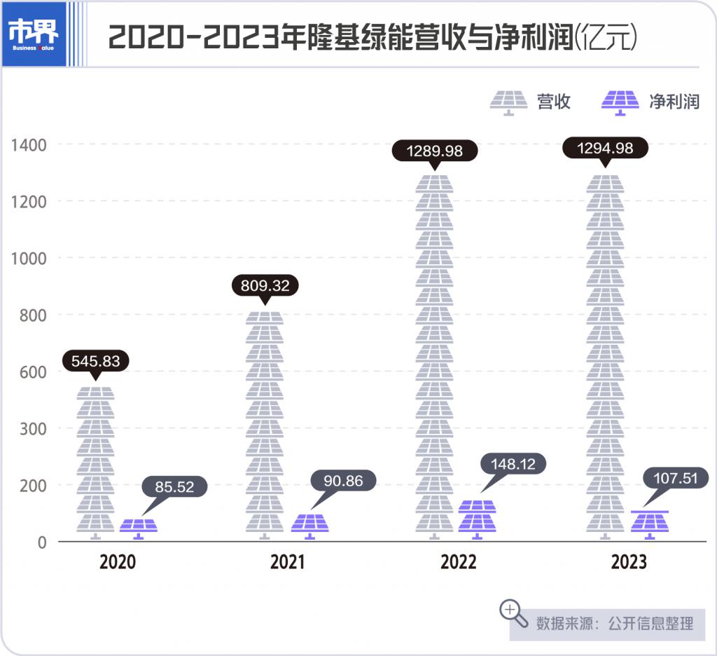 2023 年隆基绿能仍然维持了千亿营收规模,但它的增长却已减速了。