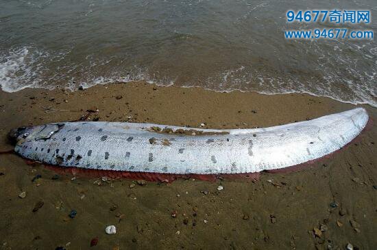 2014年3月7日,日本山口县长门市仙崎地区白潟海岸有居民发现一条长4.38米的深海“皇带鱼”。这是1999年后长门市第7次发现,此次发现的这条体型较大。