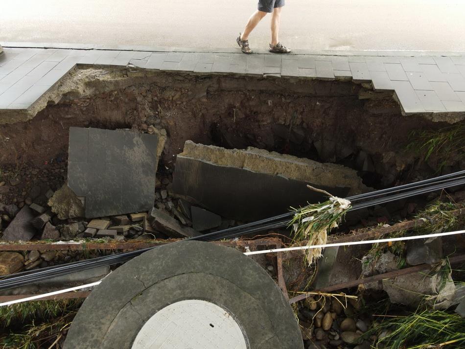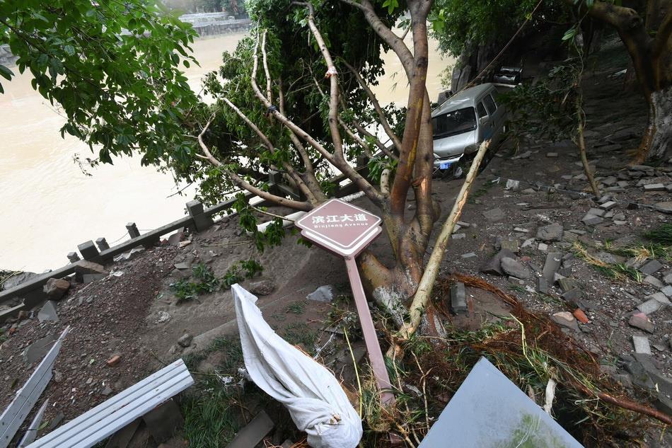 6月23日,重庆綦江,江边被冲垮的堤坝。此轮洪水过境,綦江区无一人因洪水伤亡。